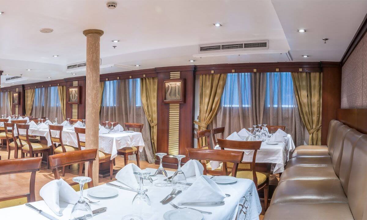 Dining aboard the Concerto Nile Cruise is an exquisite experience, with a restaurant offering a mix of Egyptian and international cuisines. The cruise also includes evening entertainment, such as traditional Egyptian folklore performances and live music, providing a vibrant atmosphere to complement the serene views. Guests will have the opportunity to visit some of Egypt’s most iconic landmarks, including the temples of Karnak, Luxor, and Edfu, as well as the Valley of the Kings. With excellent service, luxurious facilities, and expertly guided tours, the Concerto Nile Cruise offers the ultimate Nile River experience.